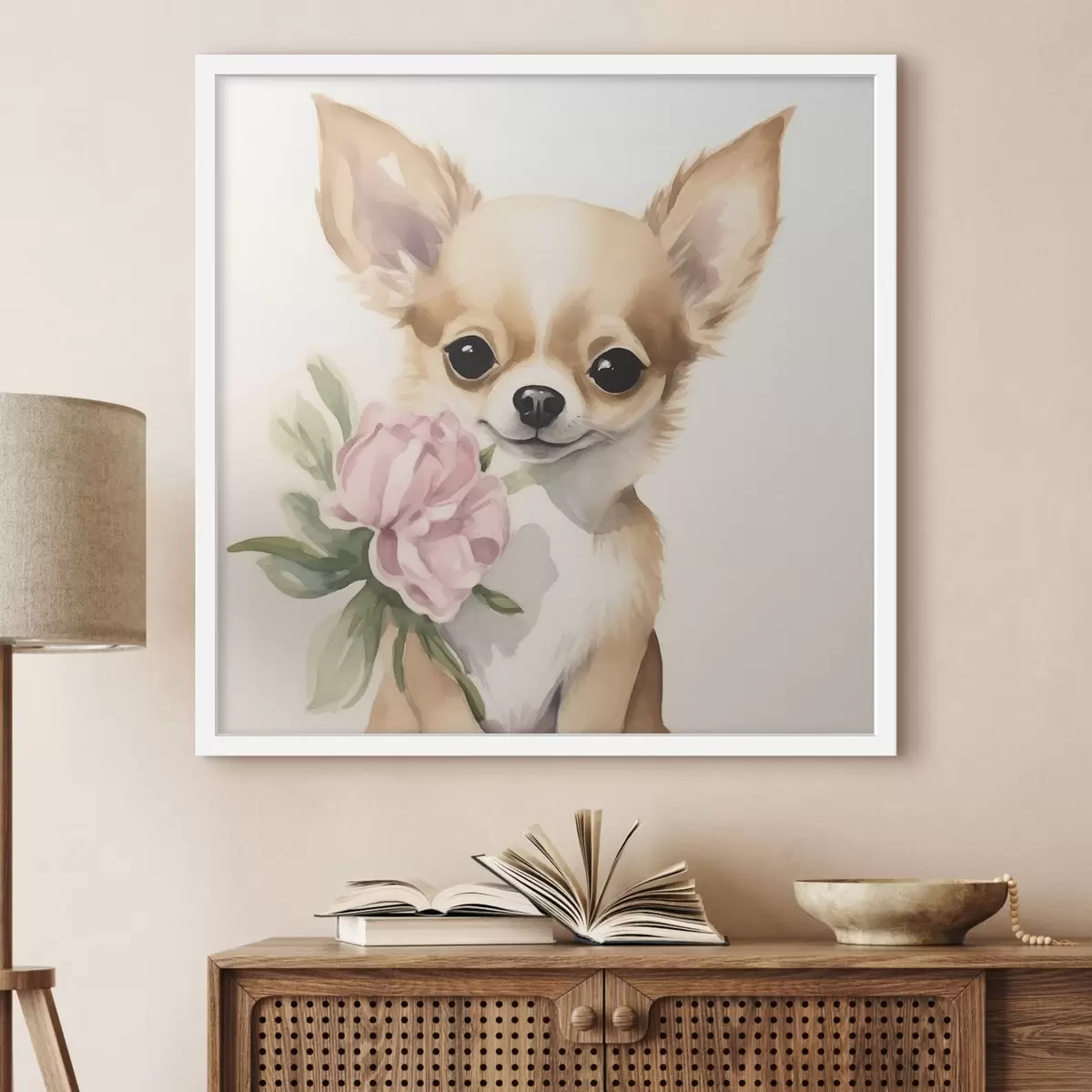 Plakatas Čihuahua ir gėlė f42341