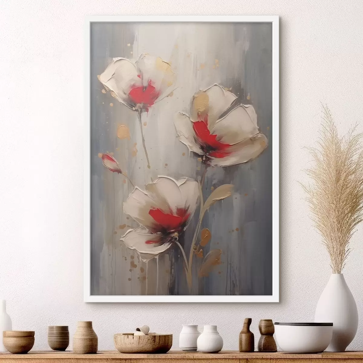 Plakatas Baltos ir raudonos gėlės Ne f42345
