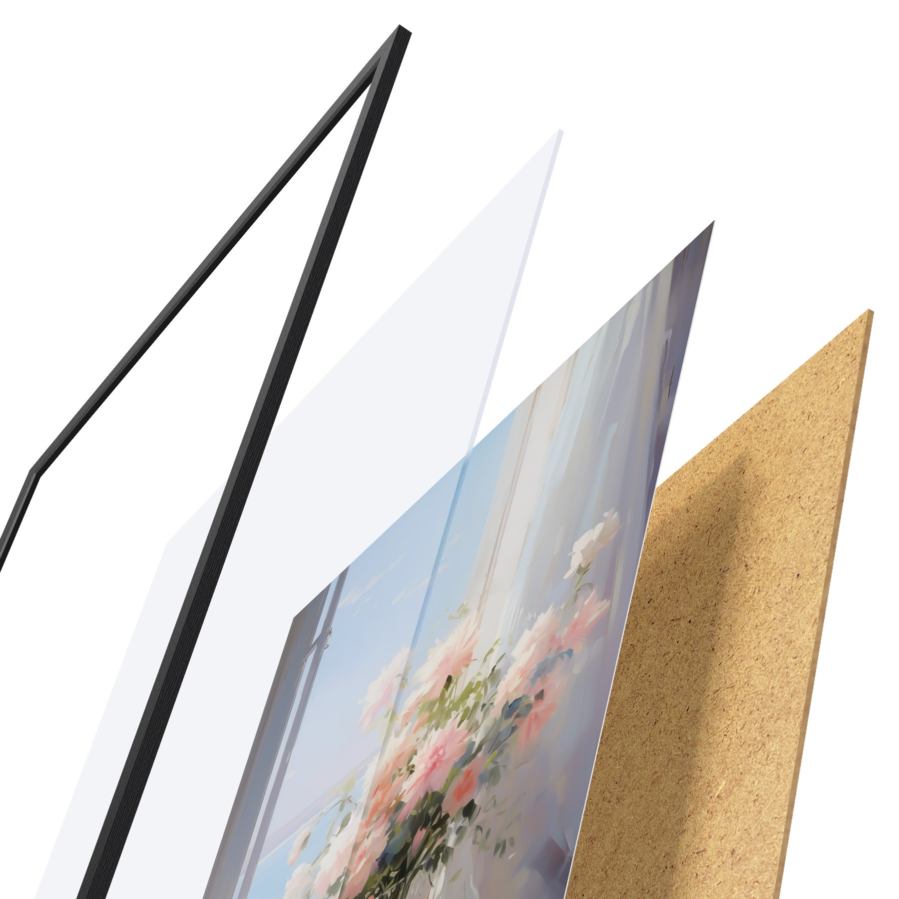 Plakatą sudaro rėmas, pleksiklas, atspausdintas vaizdas ir medžio drožlių plokštės pagrindas. Plakatą galima iš karto pakabinti ant sienos dėl kitoje pusėje esančių laikiklių.