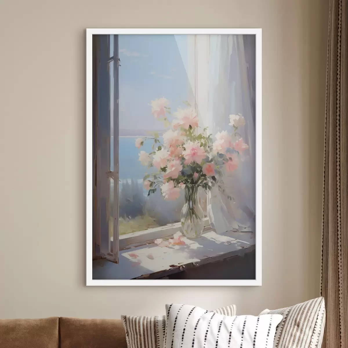 Plakatas Švelnių gėlių puokštė stiklinėje vazoje, imituojanti paveikslą Ne f42352