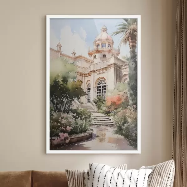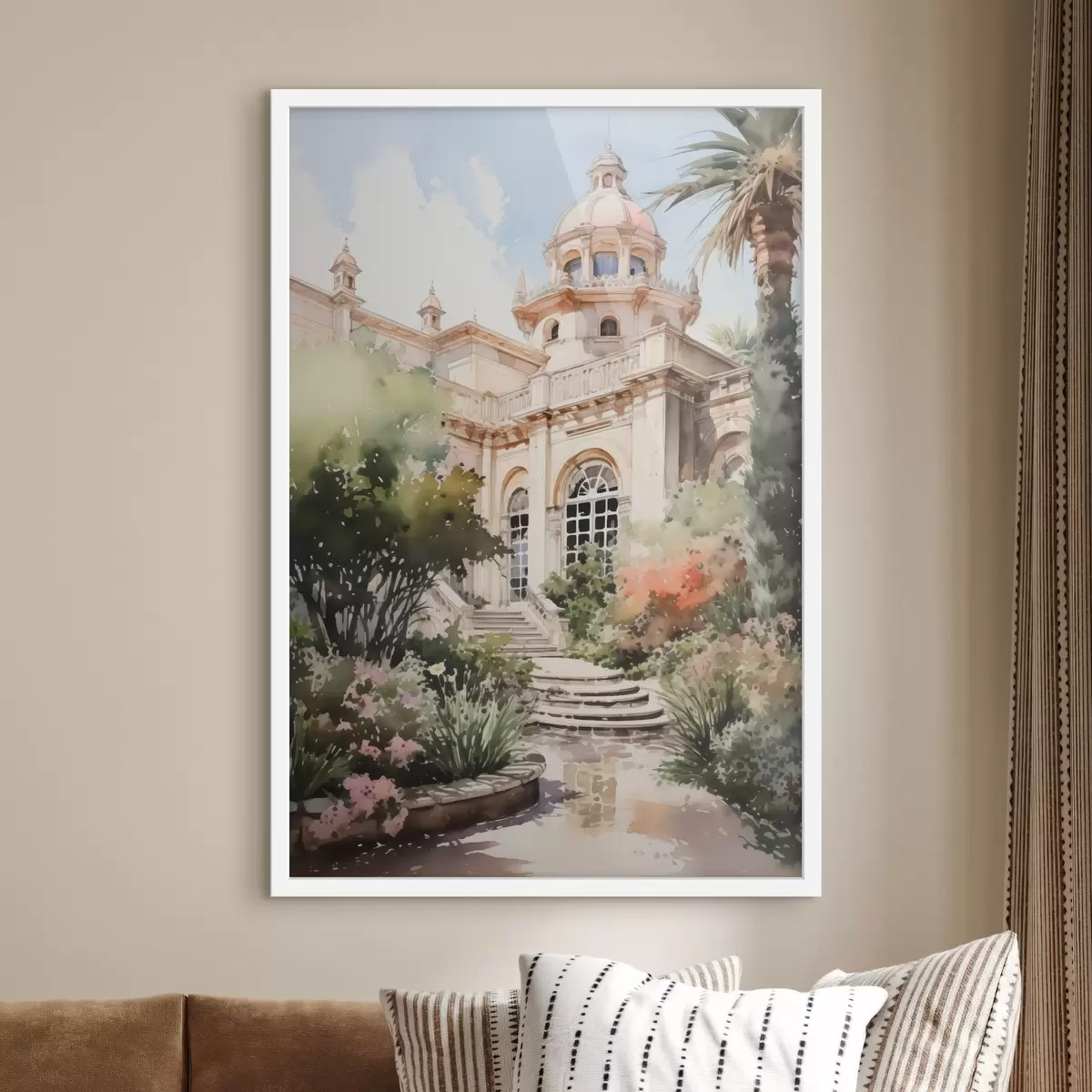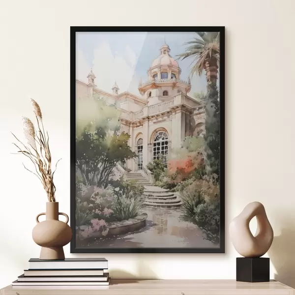 Plakatas Sodas prie namo akvarelės imitacija f42362