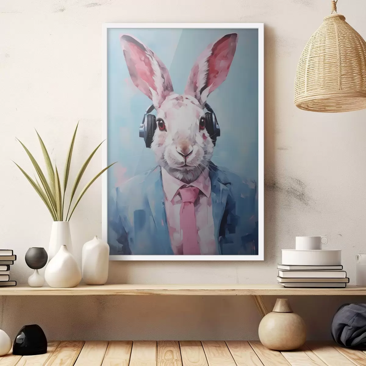 Plakatas Triušis su ausinėmis mėlynoje striukėje, imituojančioje paveikslą f42365