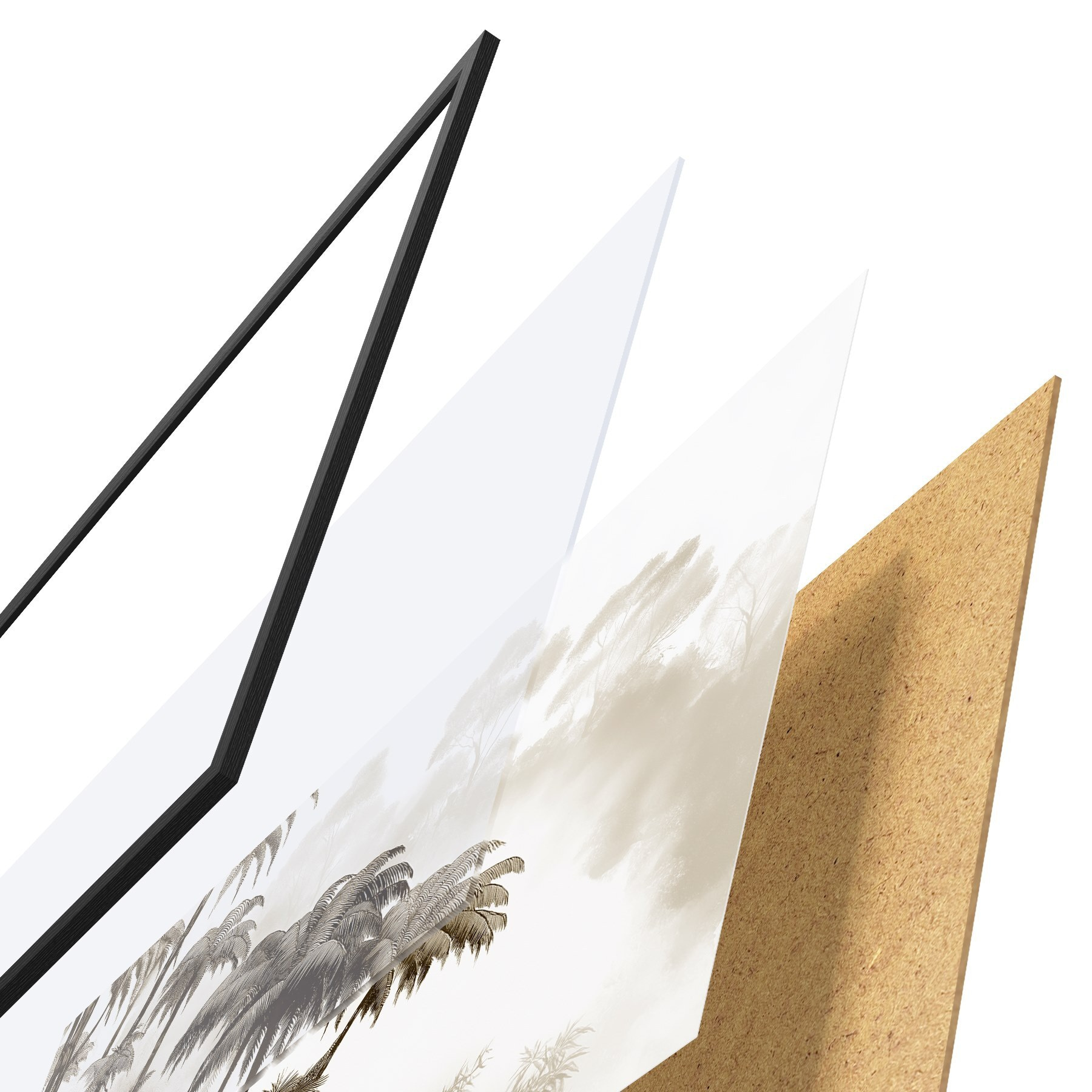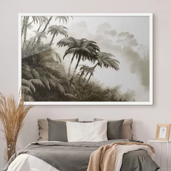 Plakatas Džiunglių miškas rūke, palmės, gamta, smėlio spalvos Ne f42372