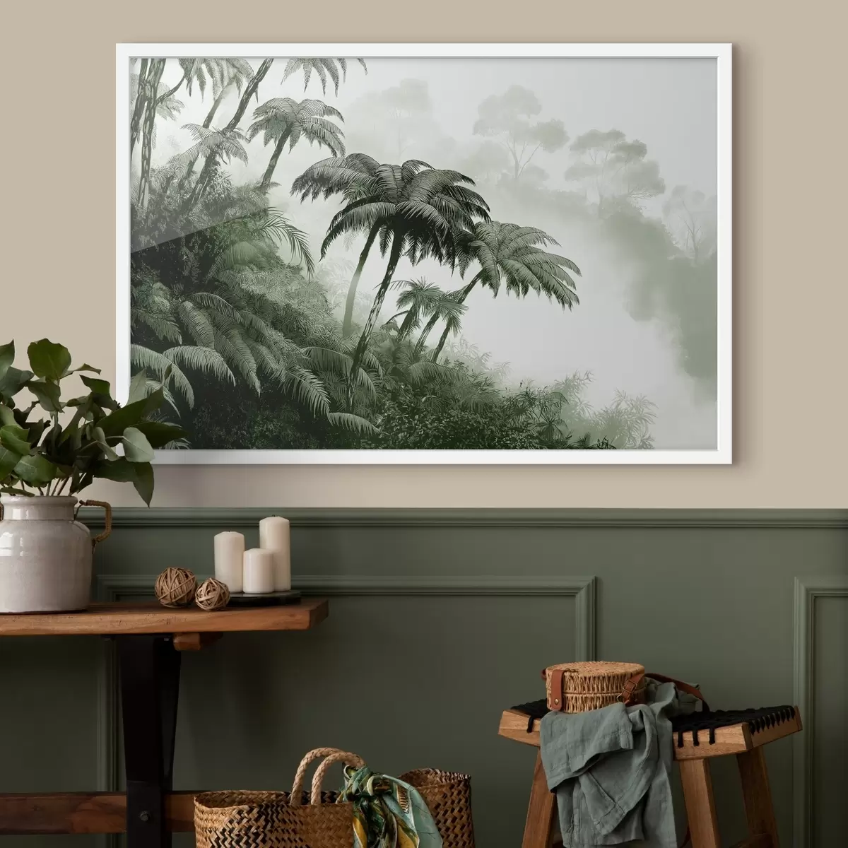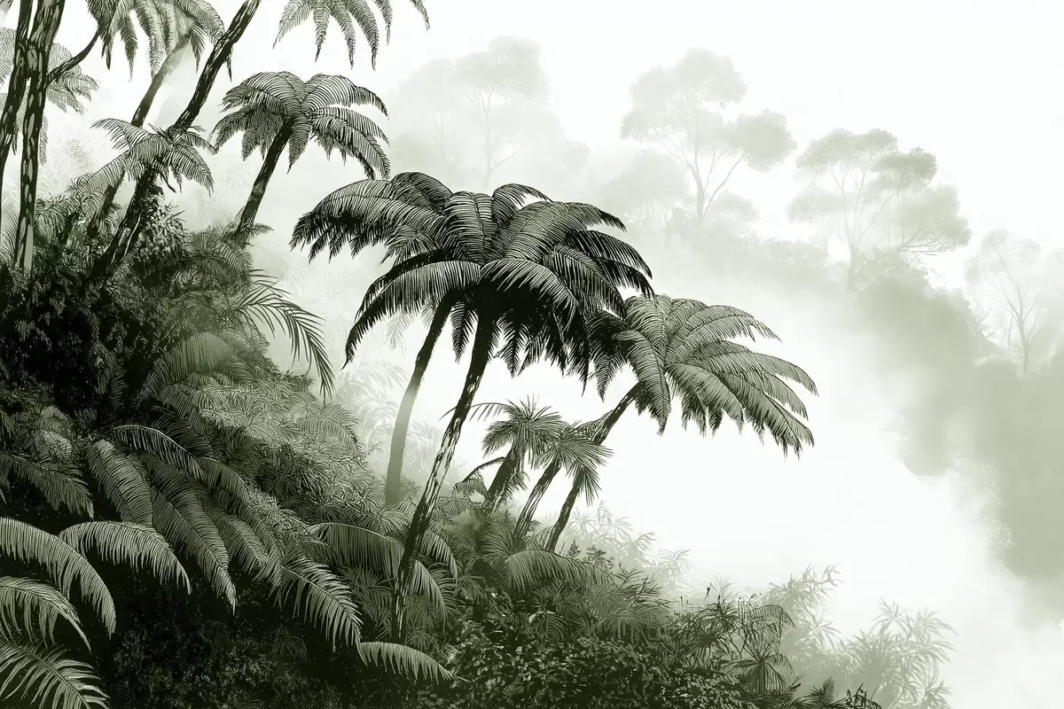 Plakatas Džiunglių miškas rūke, palmės, gamta, žalios spalvos Ne f42372v1