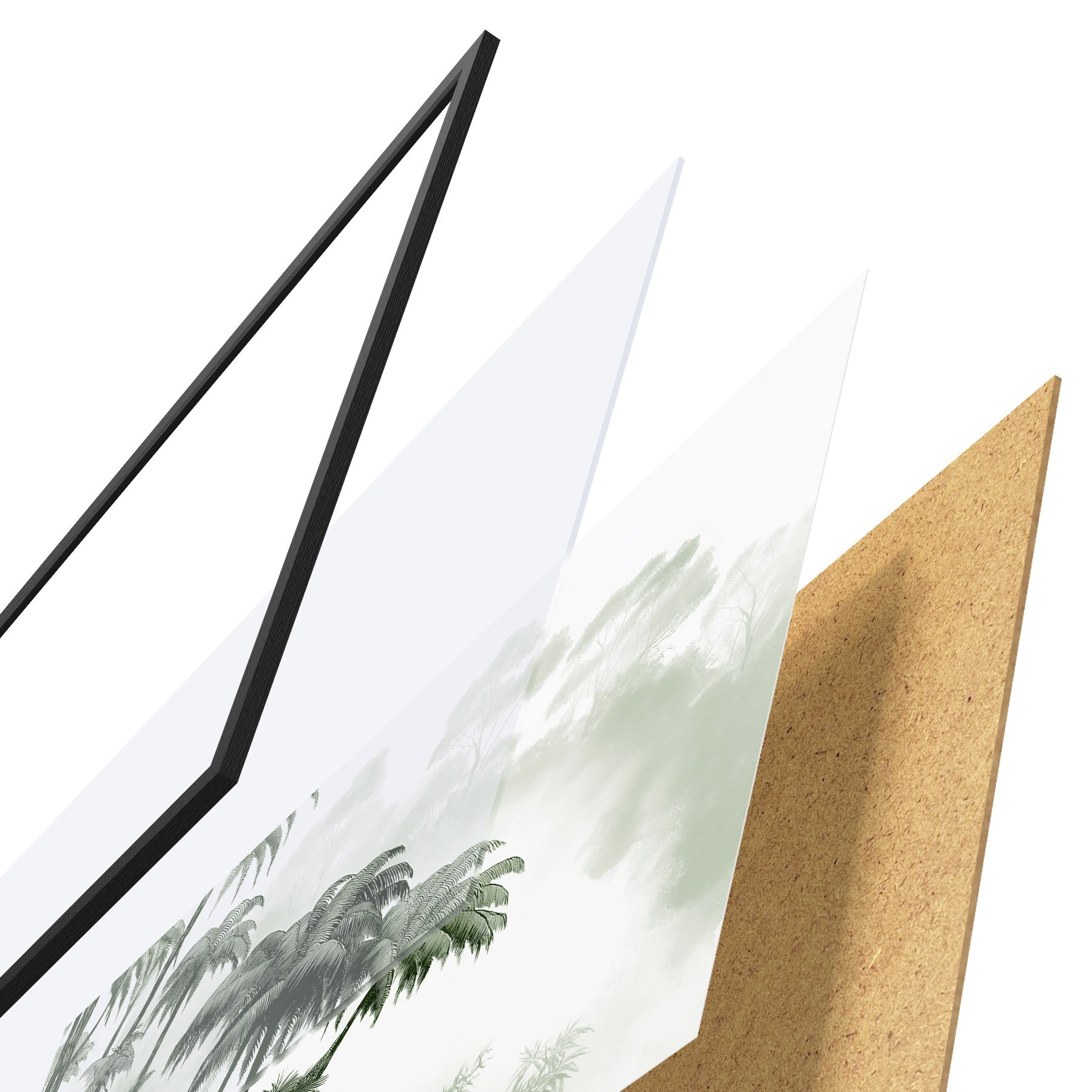 Plakatą sudaro rėmas, pleksiklas, atspausdintas vaizdas ir medžio drožlių plokštės pagrindas. Plakatą galima iš karto pakabinti ant sienos dėl kitoje pusėje esančių laikiklių.