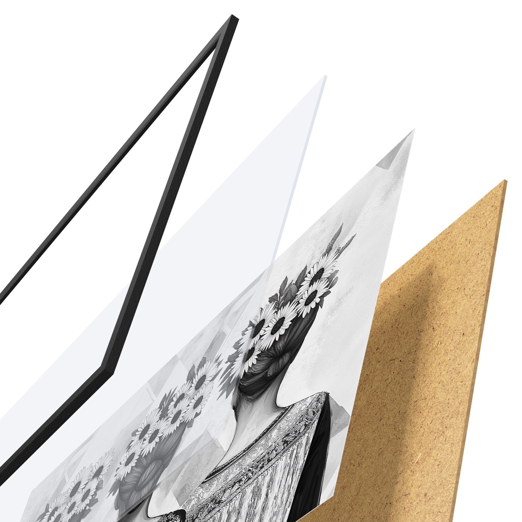 Plakatą sudaro rėmas, pleksiklas, atspausdintas vaizdas ir medžio drožlių plokštės pagrindas. Plakatą galima iš karto pakabinti ant sienos dėl kitoje pusėje esančių laikiklių.