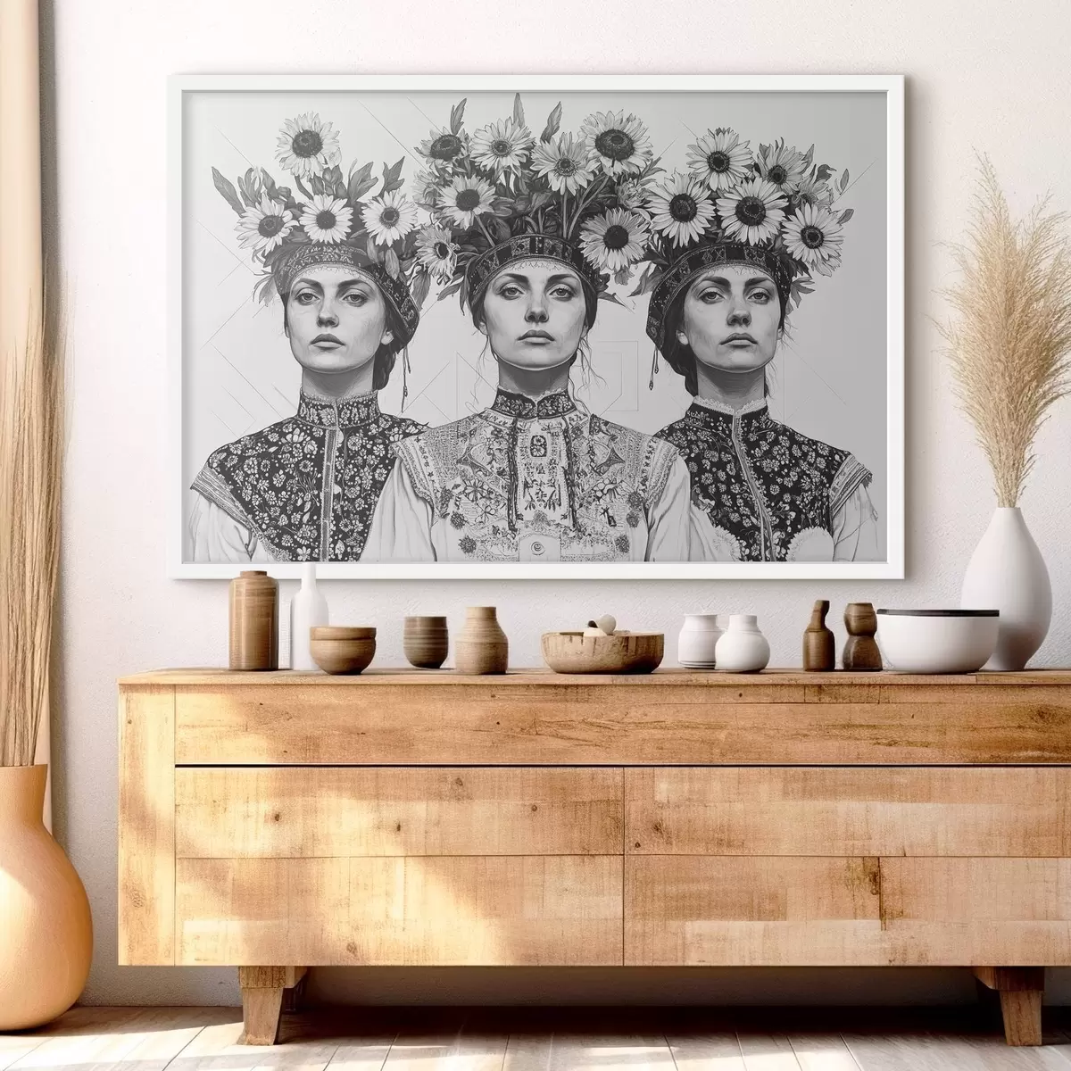 Plakatas Ukrainiečių moterys su gėlių vainikais f42379
