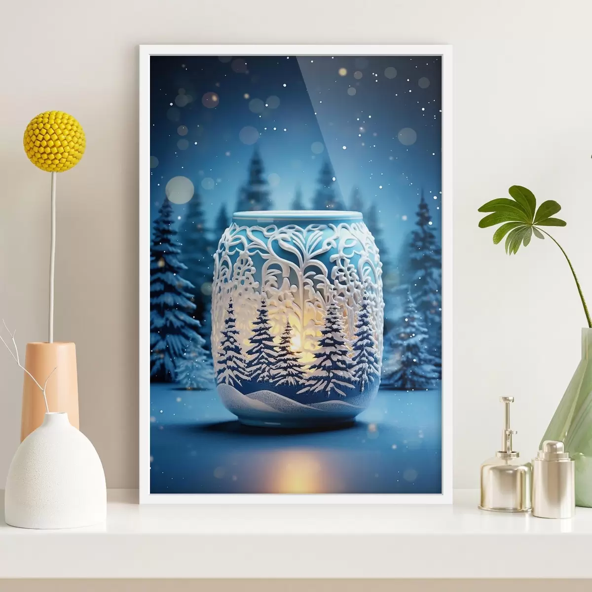 Plakatas Žvakė žiemos kraštovaizdžio fone f42380