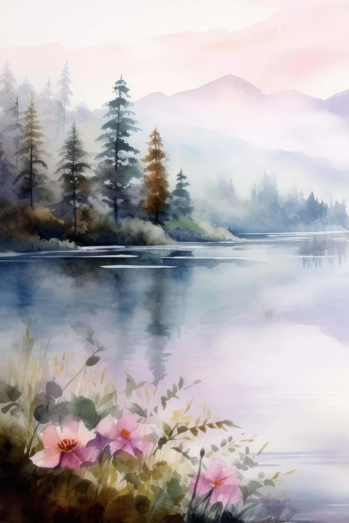 Plakatas Miškas rūke ežero fone Ne f42384