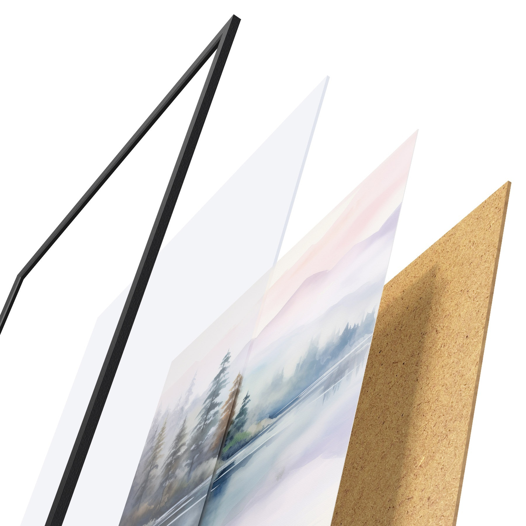 Plakatą sudaro rėmas, pleksiklas, atspausdintas vaizdas ir medžio drožlių plokštės pagrindas. Plakatą galima iš karto pakabinti ant sienos dėl kitoje pusėje esančių laikiklių.