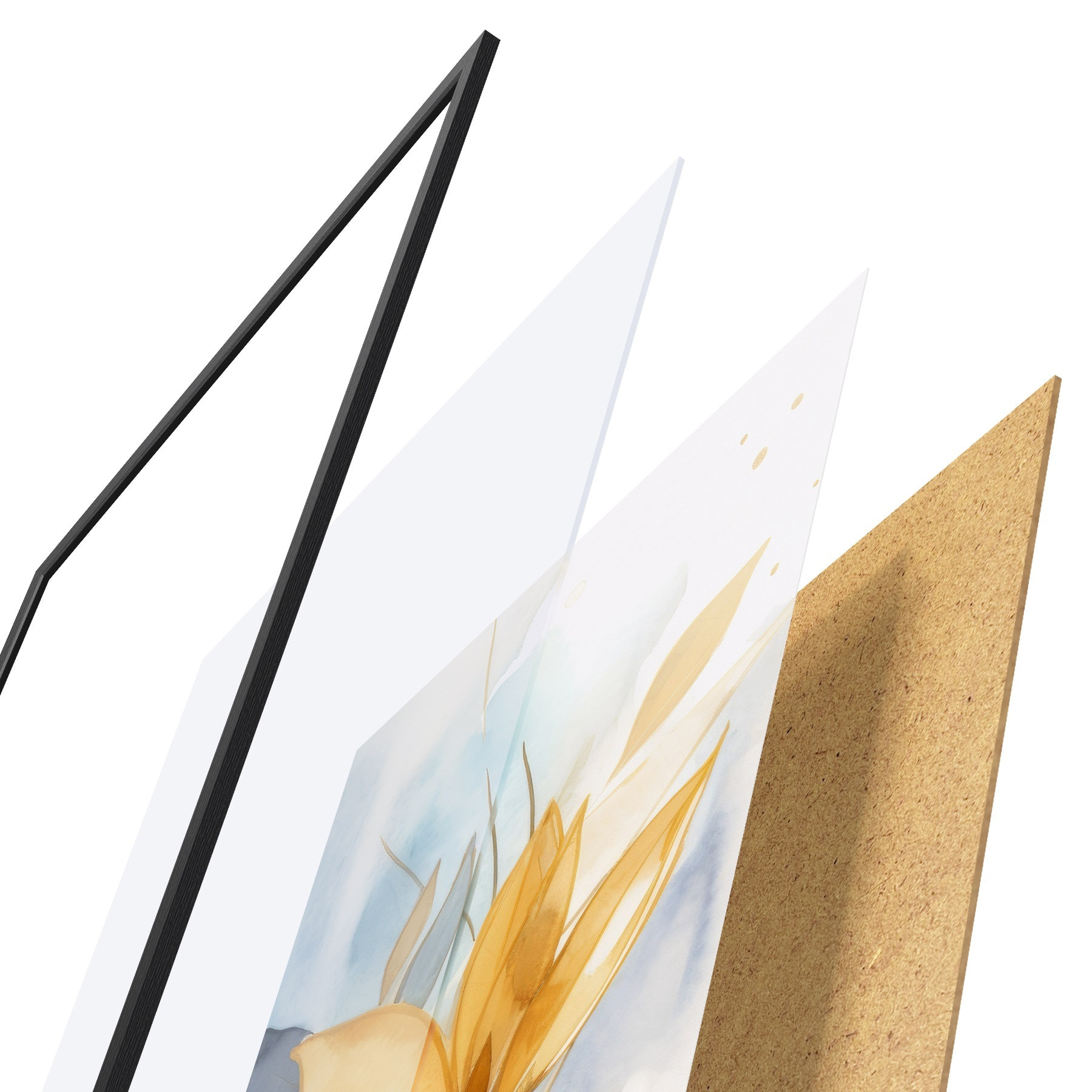 Plakatą sudaro rėmas, pleksiklas, atspausdintas vaizdas ir medžio drožlių plokštės pagrindas. Plakatą galima iš karto pakabinti ant sienos dėl kitoje pusėje esančių laikiklių.