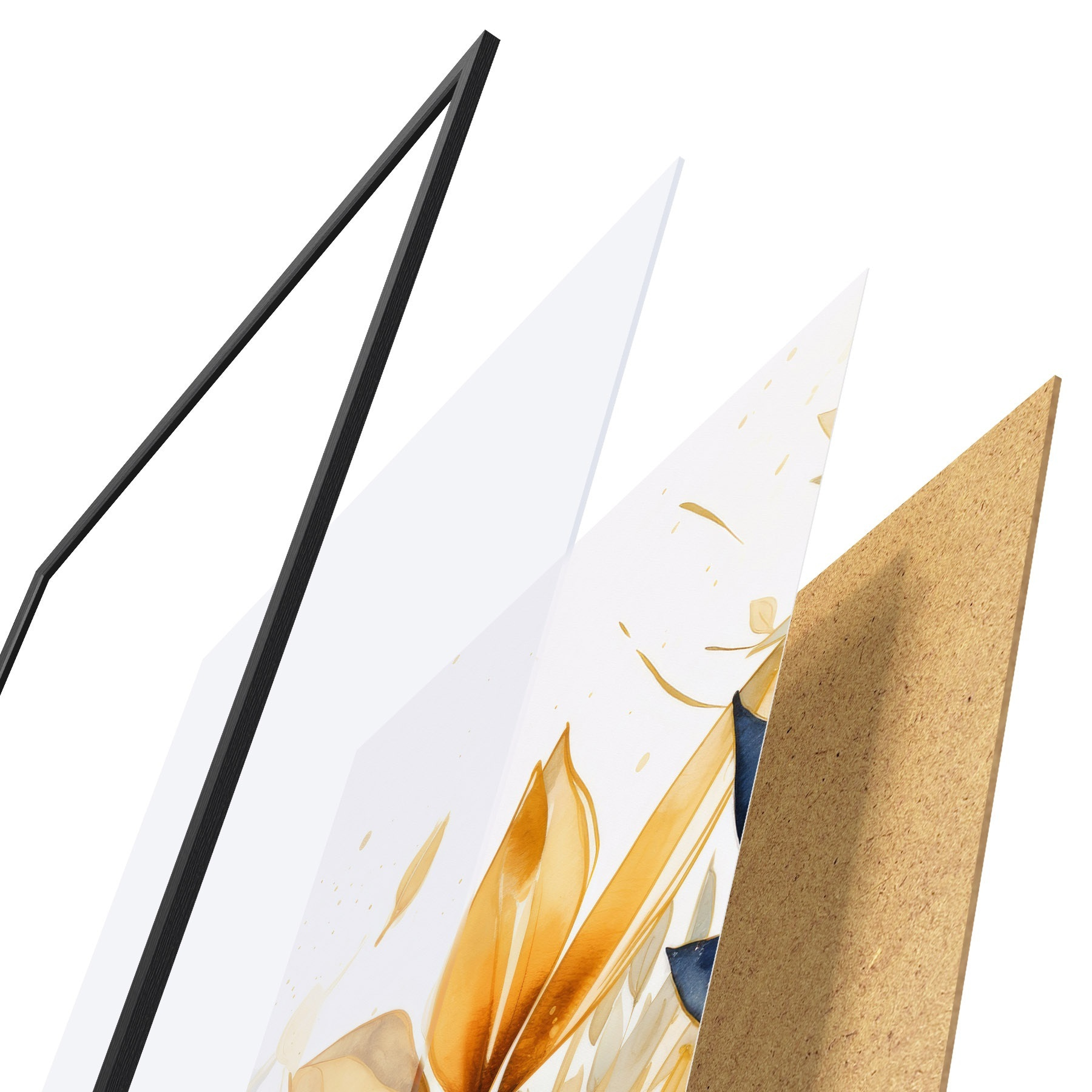 Plakatą sudaro rėmas, pleksiklas, atspausdintas vaizdas ir medžio drožlių plokštės pagrindas. Plakatą galima iš karto pakabinti ant sienos dėl kitoje pusėje esančių laikiklių.
