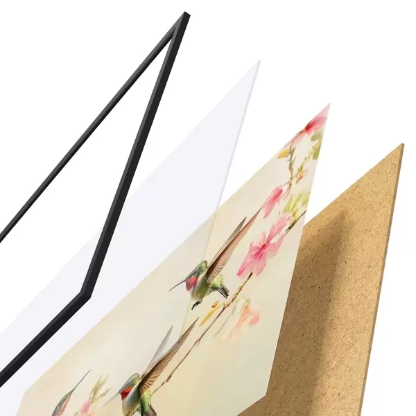 Plakatą sudaro rėmas, pleksiklas, atspausdintas vaizdas ir medžio drožlių plokštės pagrindas. Plakatą galima iš karto pakabinti ant sienos dėl kitoje pusėje esančių laikiklių.