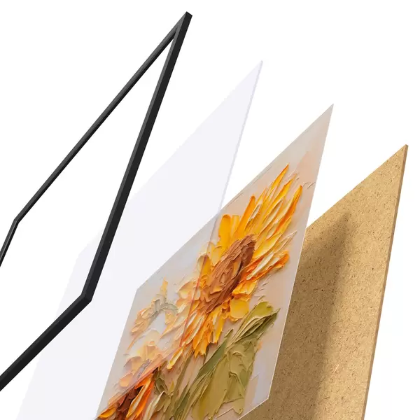 Plakatą sudaro rėmas, pleksiklas, atspausdintas vaizdas ir medžio drožlių plokštės pagrindas. Plakatą galima iš karto pakabinti ant sienos dėl kitoje pusėje esančių laikiklių.