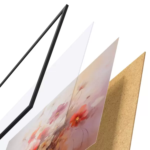 Plakatą sudaro rėmas, pleksiklas, atspausdintas vaizdas ir medžio drožlių plokštės pagrindas. Plakatą galima iš karto pakabinti ant sienos dėl kitoje pusėje esančių laikiklių.