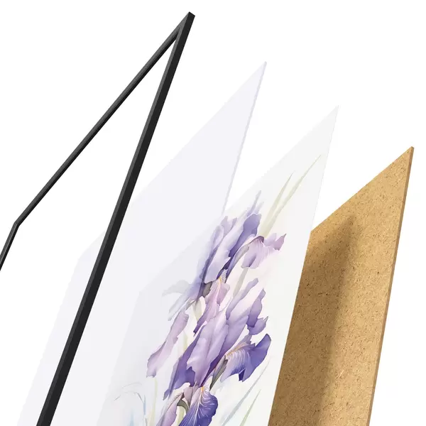 Plakatą sudaro rėmas, pleksiklas, atspausdintas vaizdas ir medžio drožlių plokštės pagrindas. Plakatą galima iš karto pakabinti ant sienos dėl kitoje pusėje esančių laikiklių.