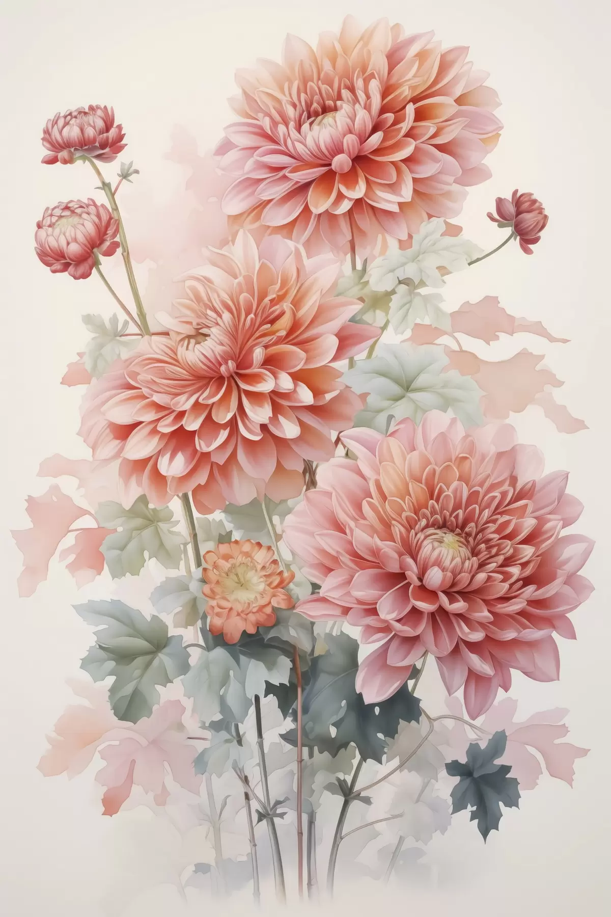 Plakatas Akvarelės imitacija chrizantemomis f42416
