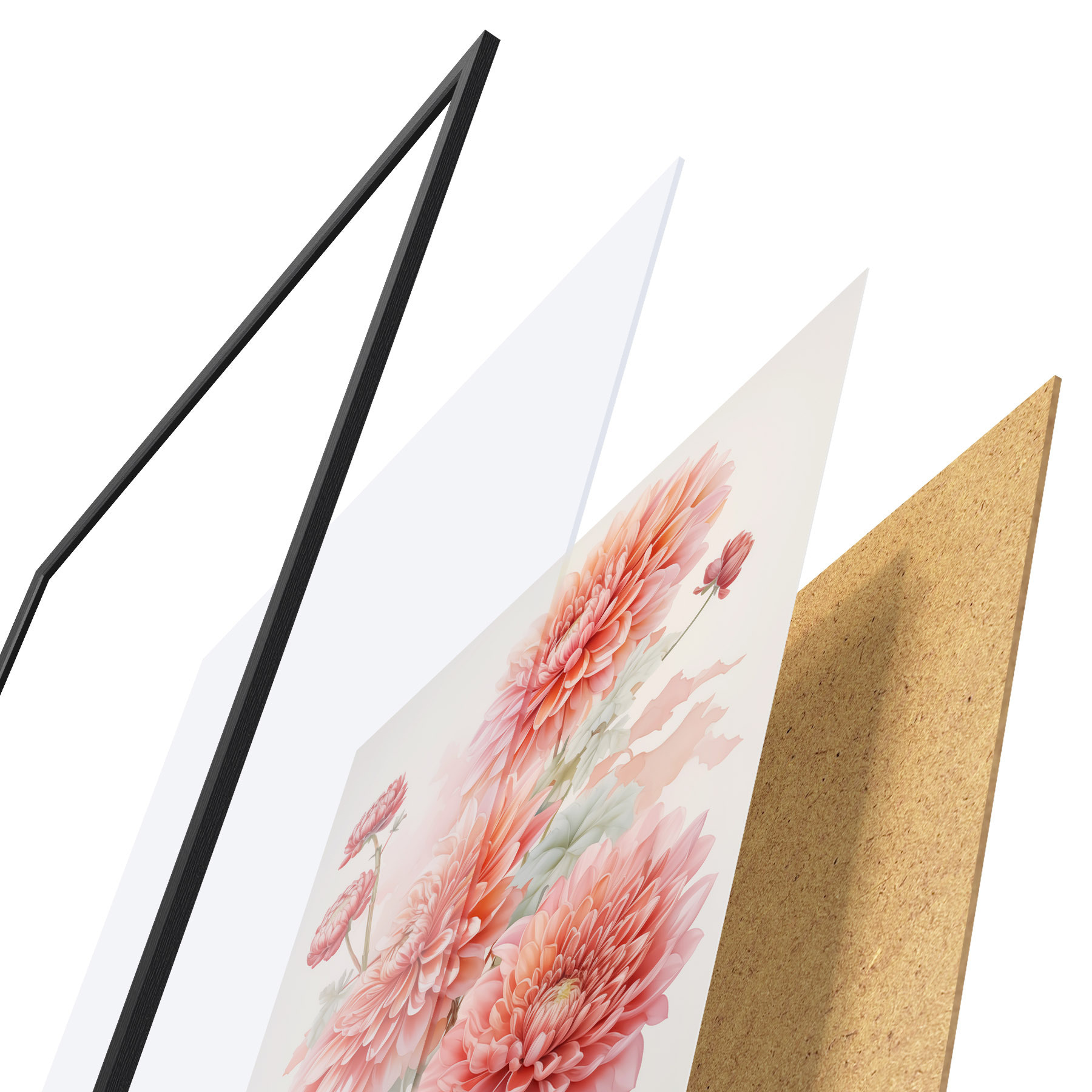 Plakatą sudaro rėmas, pleksiklas, atspausdintas vaizdas ir medžio drožlių plokštės pagrindas. Plakatą galima iš karto pakabinti ant sienos dėl kitoje pusėje esančių laikiklių.