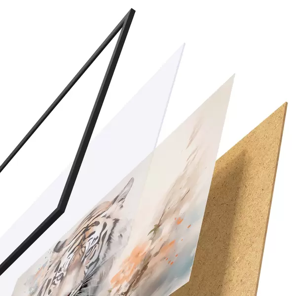 Plakatą sudaro rėmas, pleksiklas, atspausdintas vaizdas ir medžio drožlių plokštės pagrindas. Plakatą galima iš karto pakabinti ant sienos dėl kitoje pusėje esančių laikiklių.