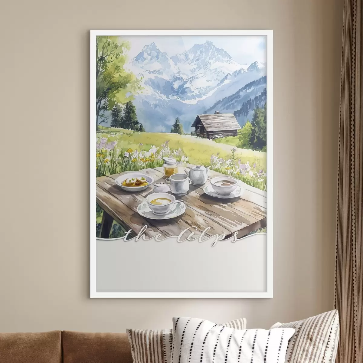 Plakatas Alpės, gražus kalnų kraštovaizdis, vasaros gamta, medinis namas Ne f42424