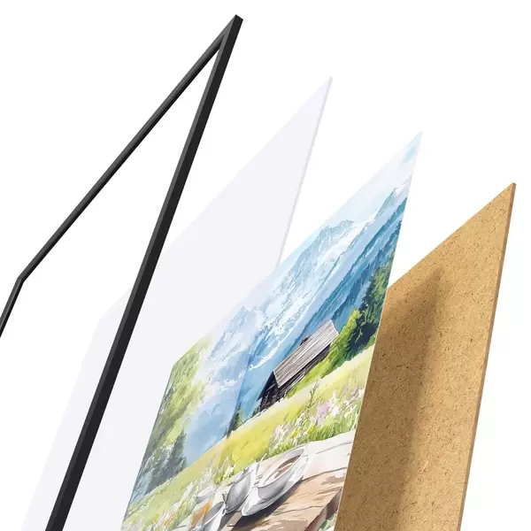 Plakatą sudaro rėmas, pleksiklas, atspausdintas vaizdas ir medžio drožlių plokštės pagrindas. Plakatą galima iš karto pakabinti ant sienos dėl kitoje pusėje esančių laikiklių.