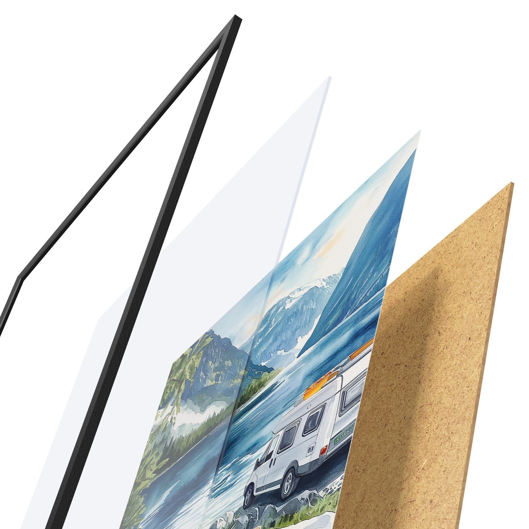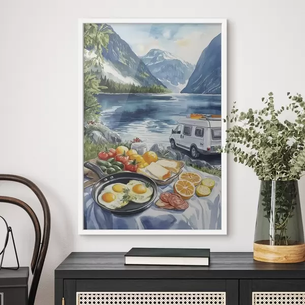 Plakatas Kelionės, gyvenimas lauke, akvarelės stilius, Norvegija, pusryčiai f42430