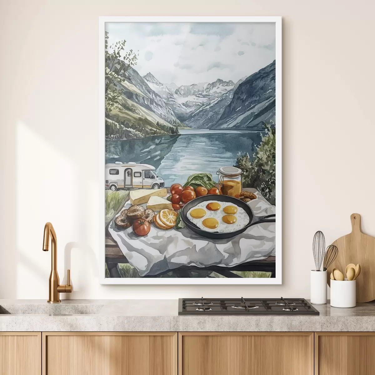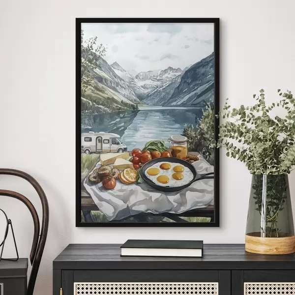 Plakatas Kelionės, gamtos peizažai, akvarelės stilius, Norvegija, pusryčiai, furgonas f42431