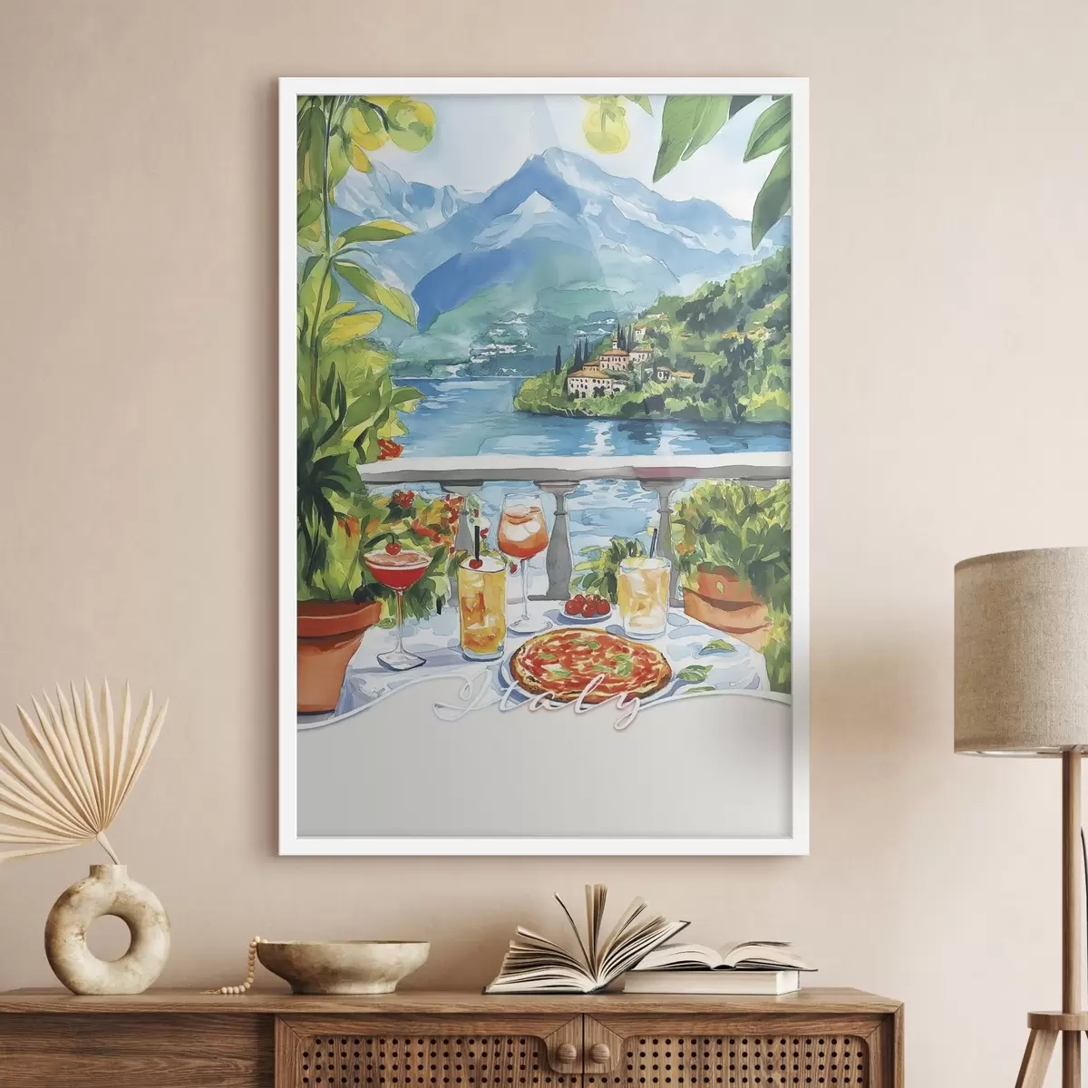Plakatas Italija estetika, akvarelės stilius, pica ir kokteiliai, kalnai Ne f42434