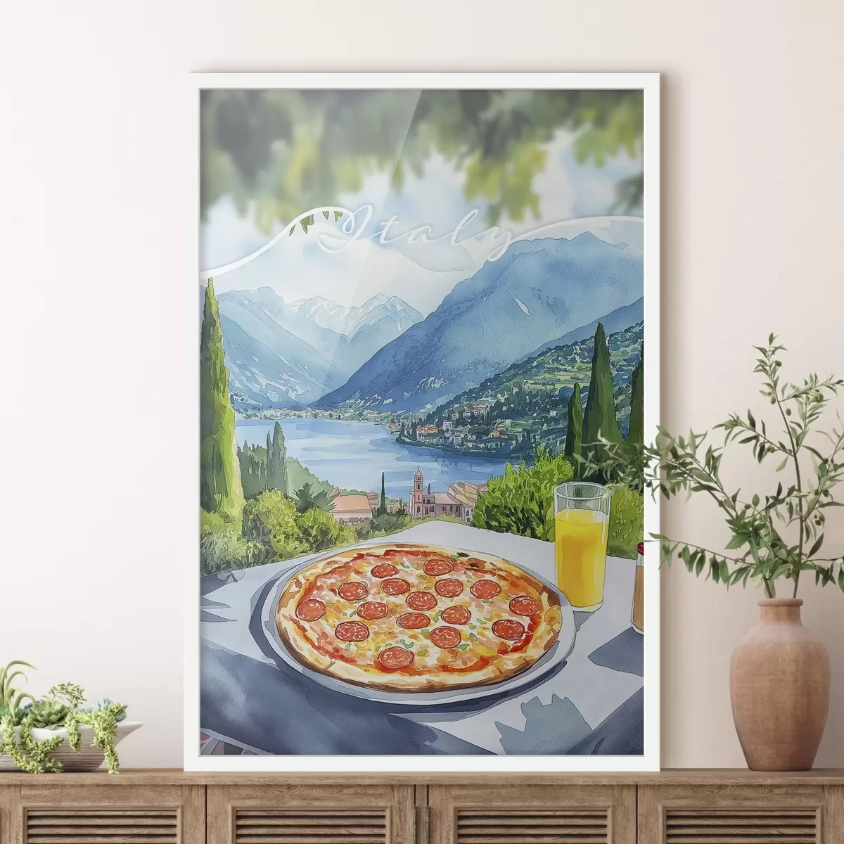 Plakatas Akvarelės stilius, Italija, pica, senamiestis, kalnų kraštovaizdis Ne f42435