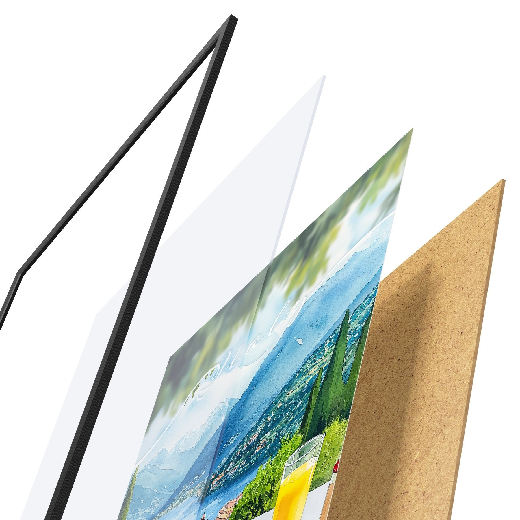 Plakatą sudaro rėmas, pleksiklas, atspausdintas vaizdas ir medžio drožlių plokštės pagrindas. Plakatą galima iš karto pakabinti ant sienos dėl kitoje pusėje esančių laikiklių.