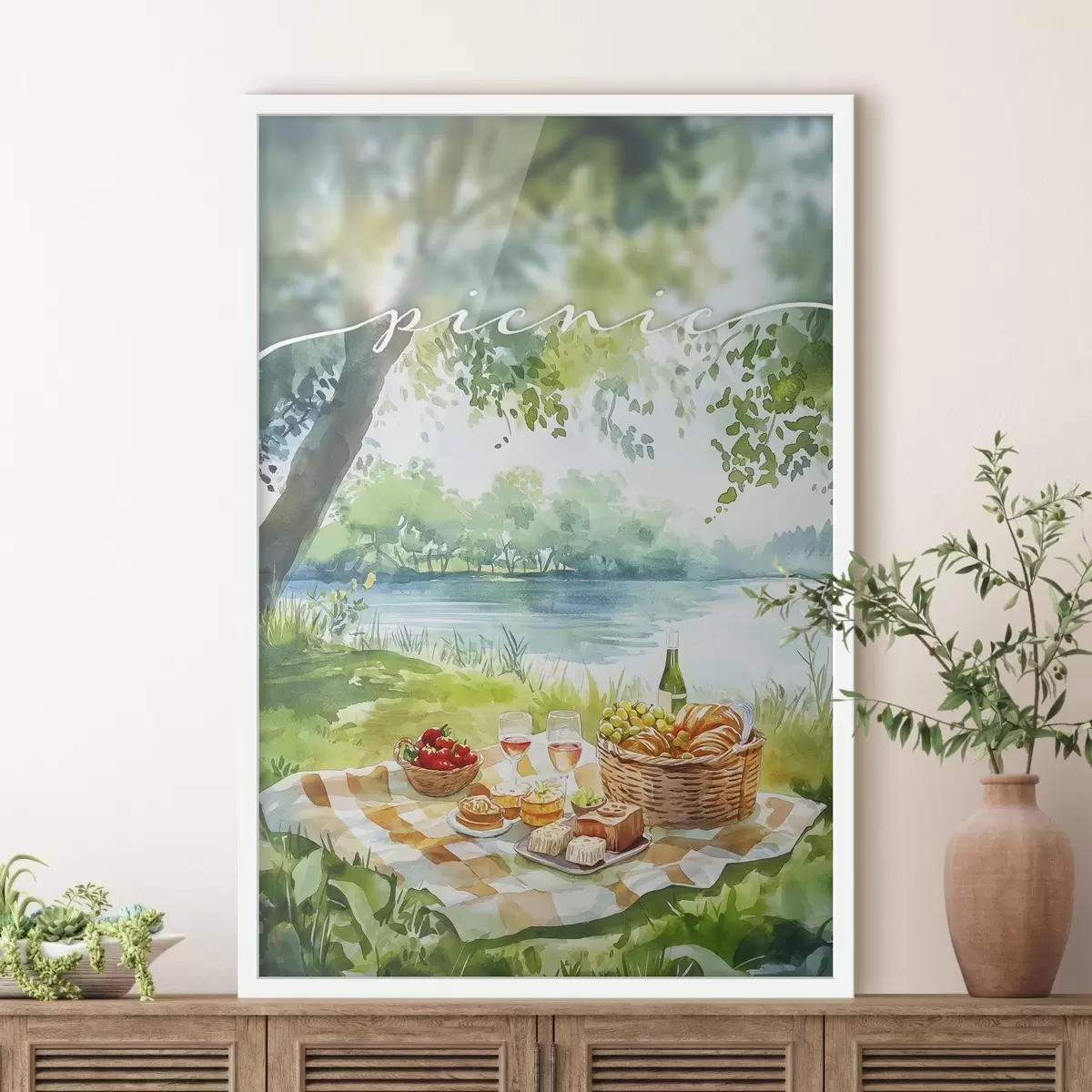 Plakatas Pikniko estetika, vasaros gamta, ežeras, romantiškas, akvarelės stilius Ne f42450