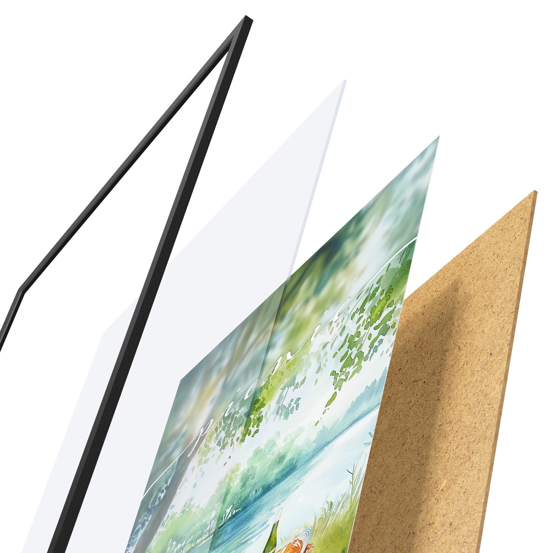 Plakatas Pikniko estetika, vasaros gamta, ežeras, romantiškas, akvarelės stilius f42450