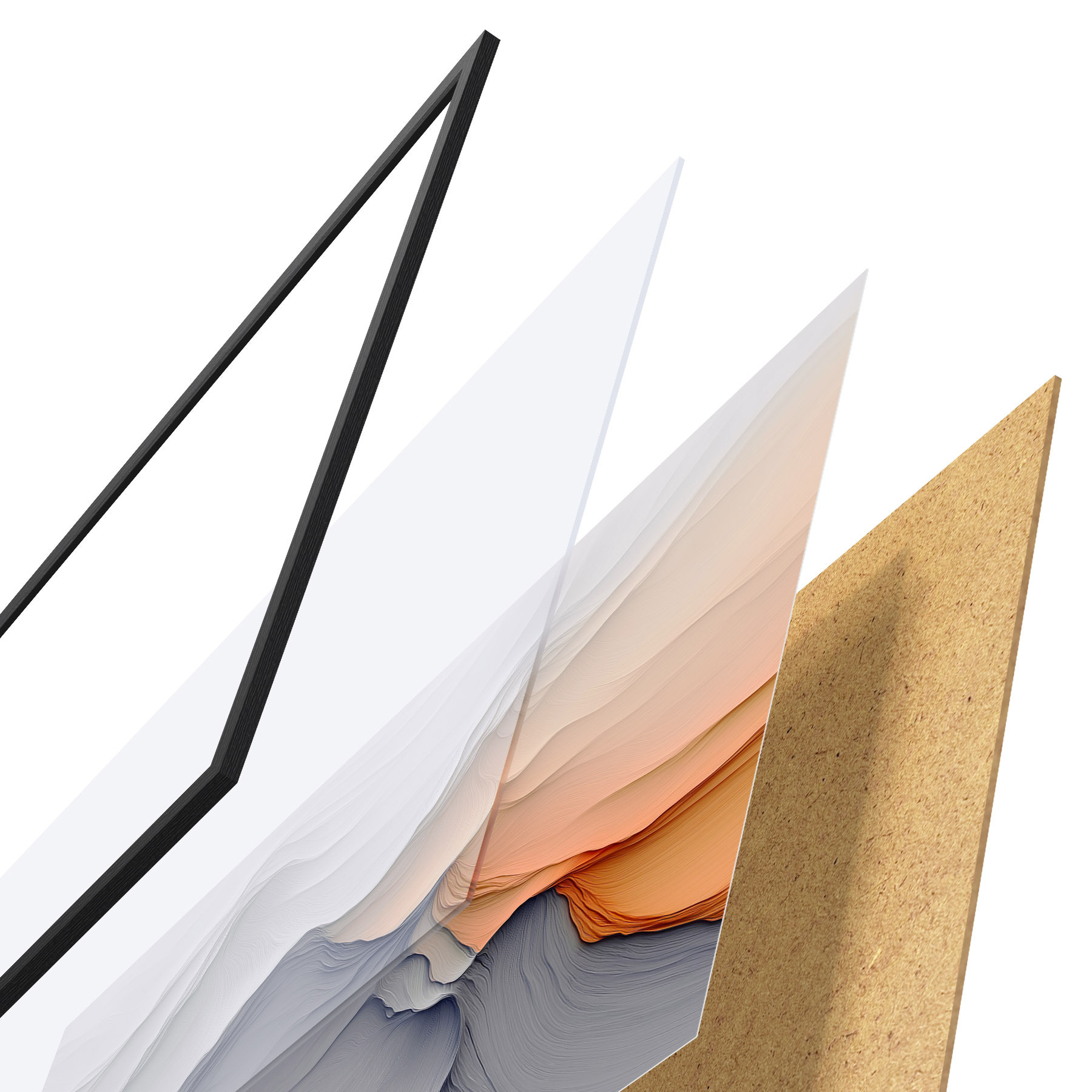 Plakatą sudaro rėmas, pleksiklas, atspausdintas vaizdas ir medžio drožlių plokštės pagrindas. Plakatą galima iš karto pakabinti ant sienos dėl kitoje pusėje esančių laikiklių.
