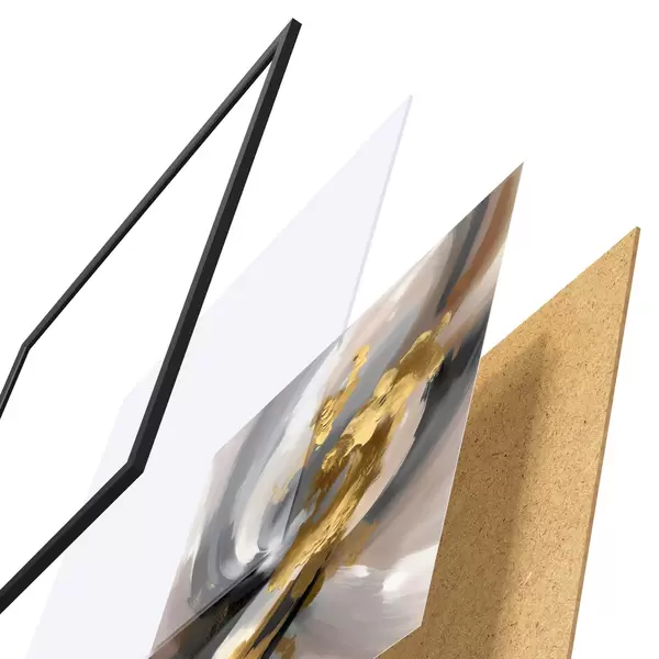 Plakatą sudaro rėmas, pleksiklas, atspausdintas vaizdas ir medžio drožlių plokštės pagrindas. Plakatą galima iš karto pakabinti ant sienos dėl kitoje pusėje esančių laikiklių.