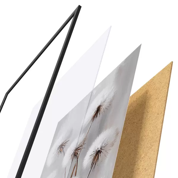 Plakatą sudaro rėmas, pleksiklas, atspausdintas vaizdas ir medžio drožlių plokštės pagrindas. Plakatą galima iš karto pakabinti ant sienos dėl kitoje pusėje esančių laikiklių.