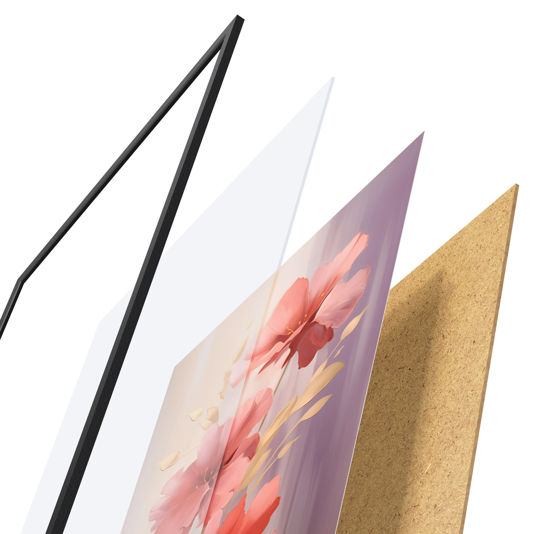 Plakatą sudaro rėmas, pleksiklas, atspausdintas vaizdas ir medžio drožlių plokštės pagrindas. Plakatą galima iš karto pakabinti ant sienos dėl kitoje pusėje esančių laikiklių.