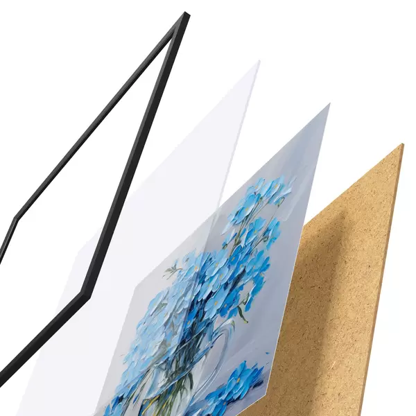 Plakatą sudaro rėmas, pleksiklas, atspausdintas vaizdas ir medžio drožlių plokštės pagrindas. Plakatą galima iš karto pakabinti ant sienos dėl kitoje pusėje esančių laikiklių.