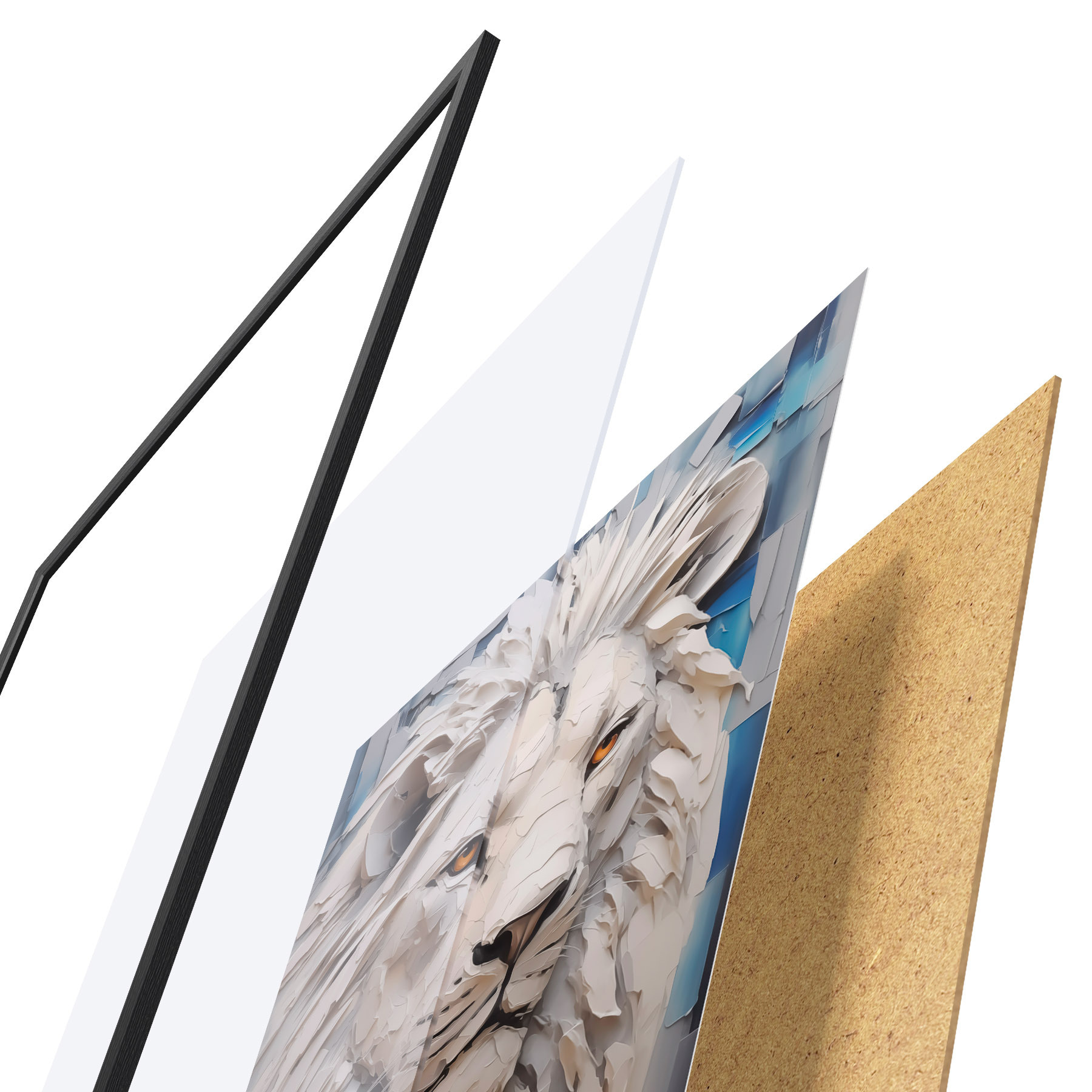 Plakatą sudaro rėmas, pleksiklas, atspausdintas vaizdas ir medžio drožlių plokštės pagrindas. Plakatą galima iš karto pakabinti ant sienos dėl kitoje pusėje esančių laikiklių.