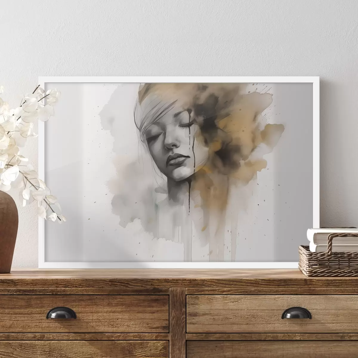 Plakatas Mergaitės portretas akvarelės technika su abstrakčiais šešėliais Ne f42474
