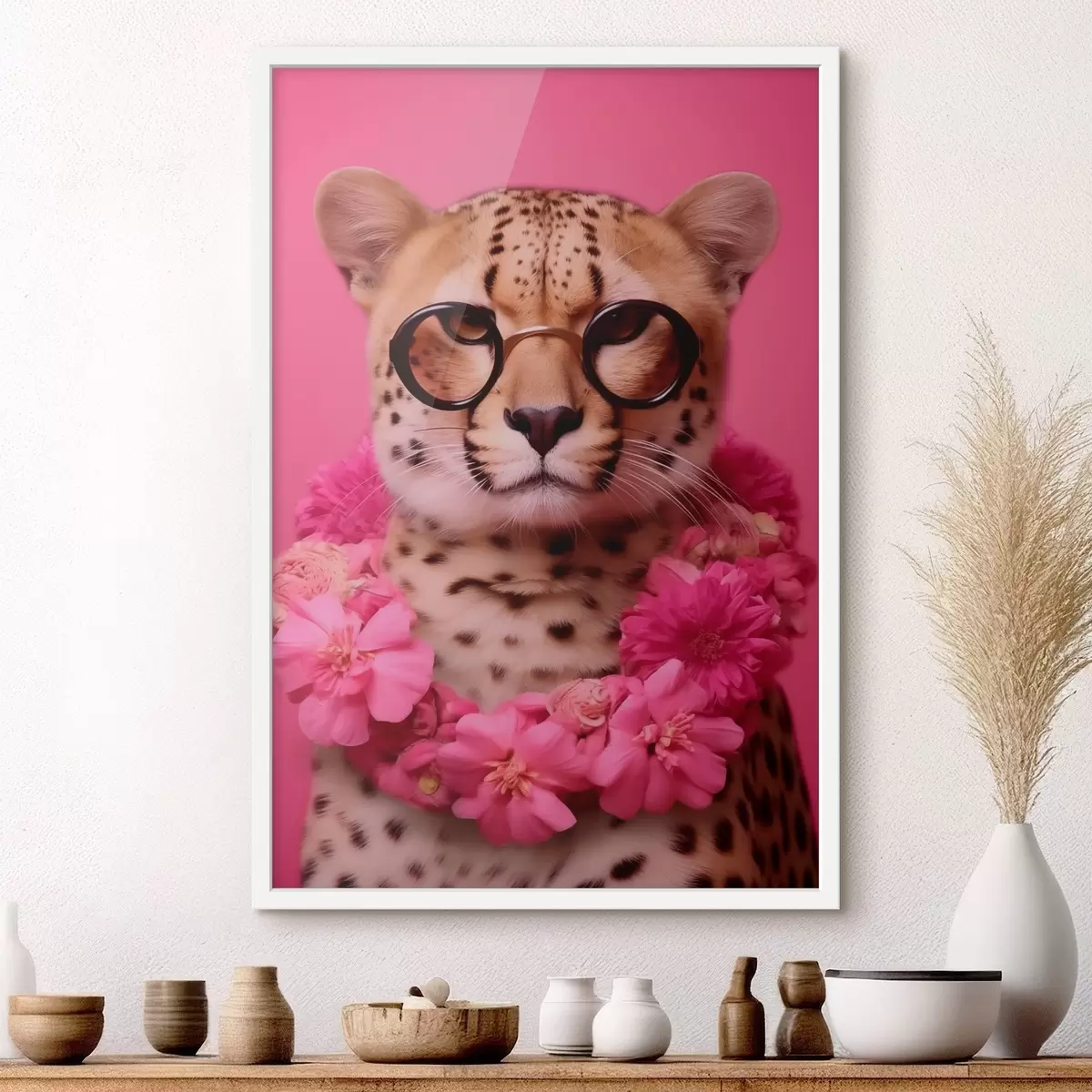 Plakatas Gepardas akiniuose su gėlių girlianda f42477