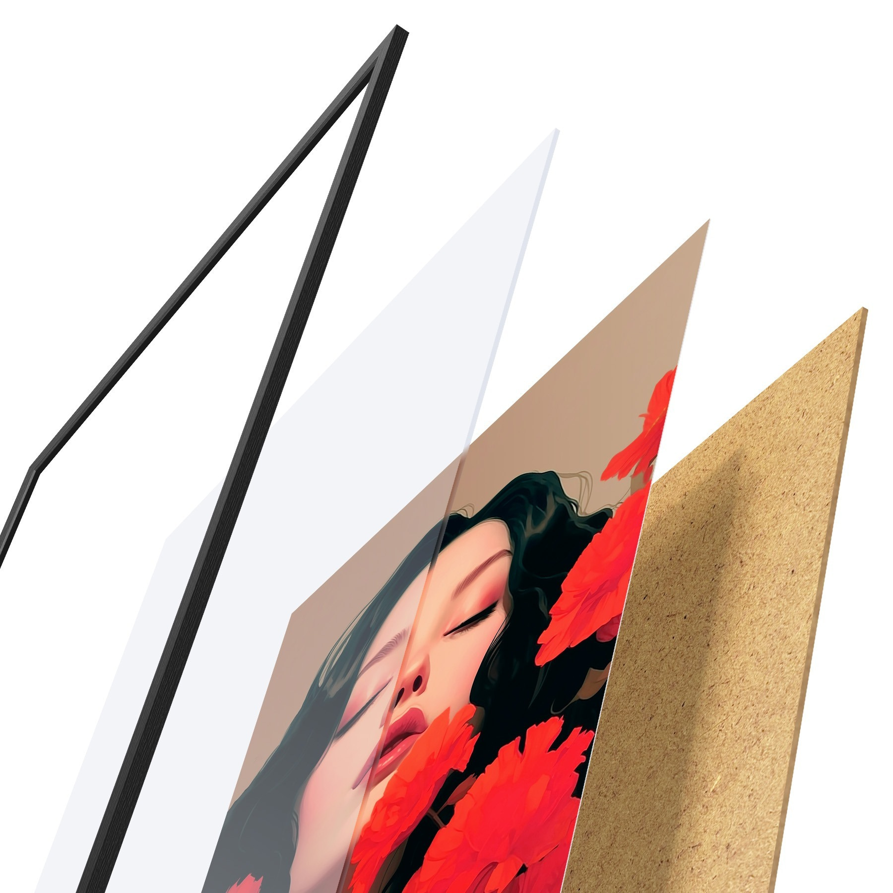 Plakatą sudaro rėmas, pleksiklas, atspausdintas vaizdas ir medžio drožlių plokštės pagrindas. Plakatą galima iš karto pakabinti ant sienos dėl kitoje pusėje esančių laikiklių.