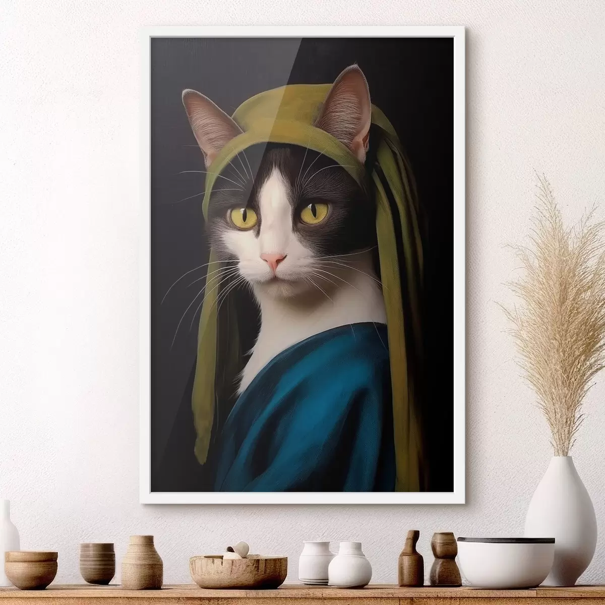 Plakatas Portreto stiliaus katė su perliniu auskaru Ne f42486