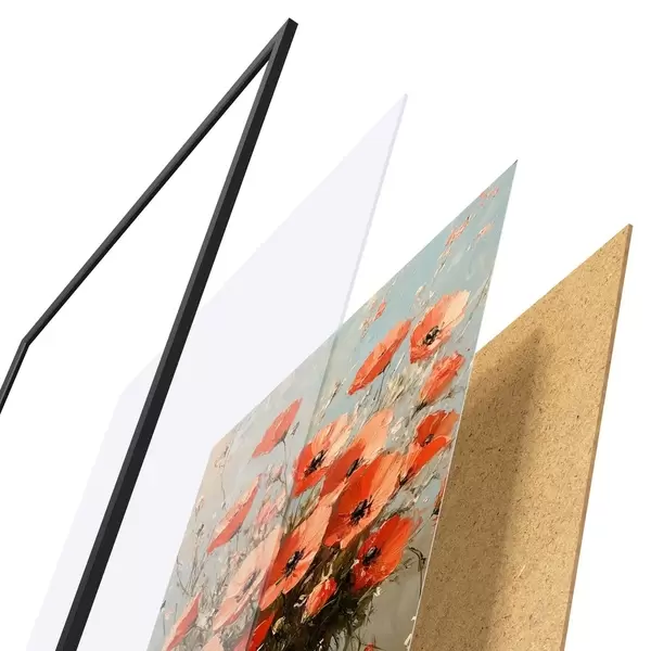 Plakatą sudaro rėmas, pleksiklas, atspausdintas vaizdas ir medžio drožlių plokštės pagrindas. Plakatą galima iš karto pakabinti ant sienos dėl kitoje pusėje esančių laikiklių.