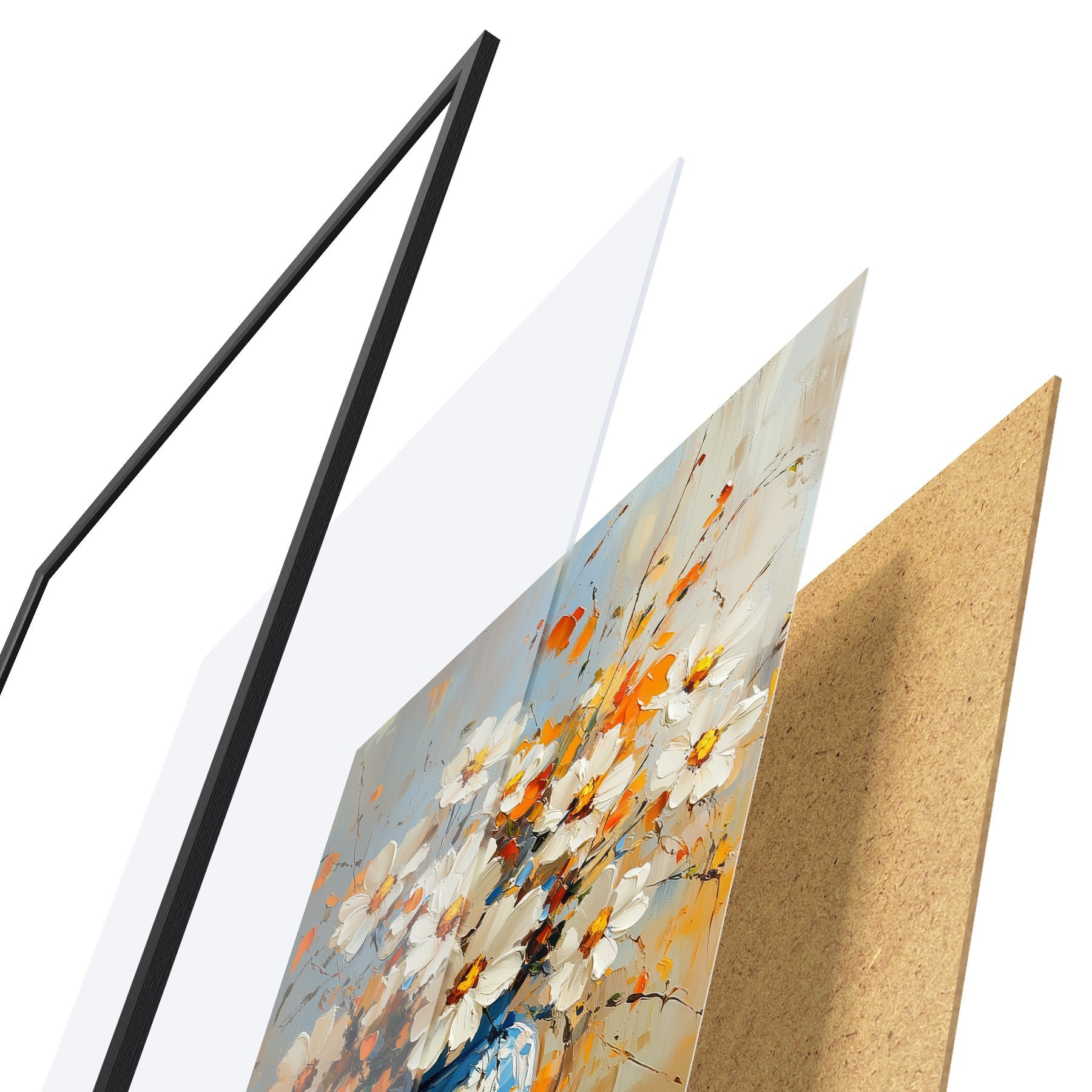 Plakatą sudaro rėmas, pleksiklas, atspausdintas vaizdas ir medžio drožlių plokštės pagrindas. Plakatą galima iš karto pakabinti ant sienos dėl kitoje pusėje esančių laikiklių.