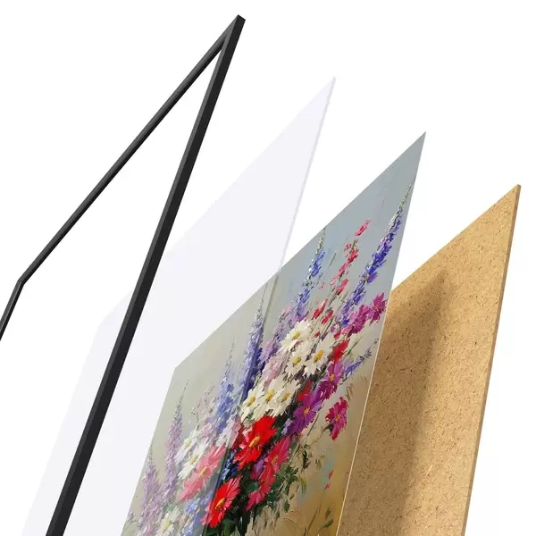 Plakatą sudaro rėmas, pleksiklas, atspausdintas vaizdas ir medžio drožlių plokštės pagrindas. Plakatą galima iš karto pakabinti ant sienos dėl kitoje pusėje esančių laikiklių.