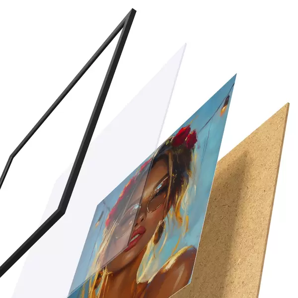 Plakatą sudaro rėmas, pleksiklas, atspausdintas vaizdas ir medžio drožlių plokštės pagrindas. Plakatą galima iš karto pakabinti ant sienos dėl kitoje pusėje esančių laikiklių.