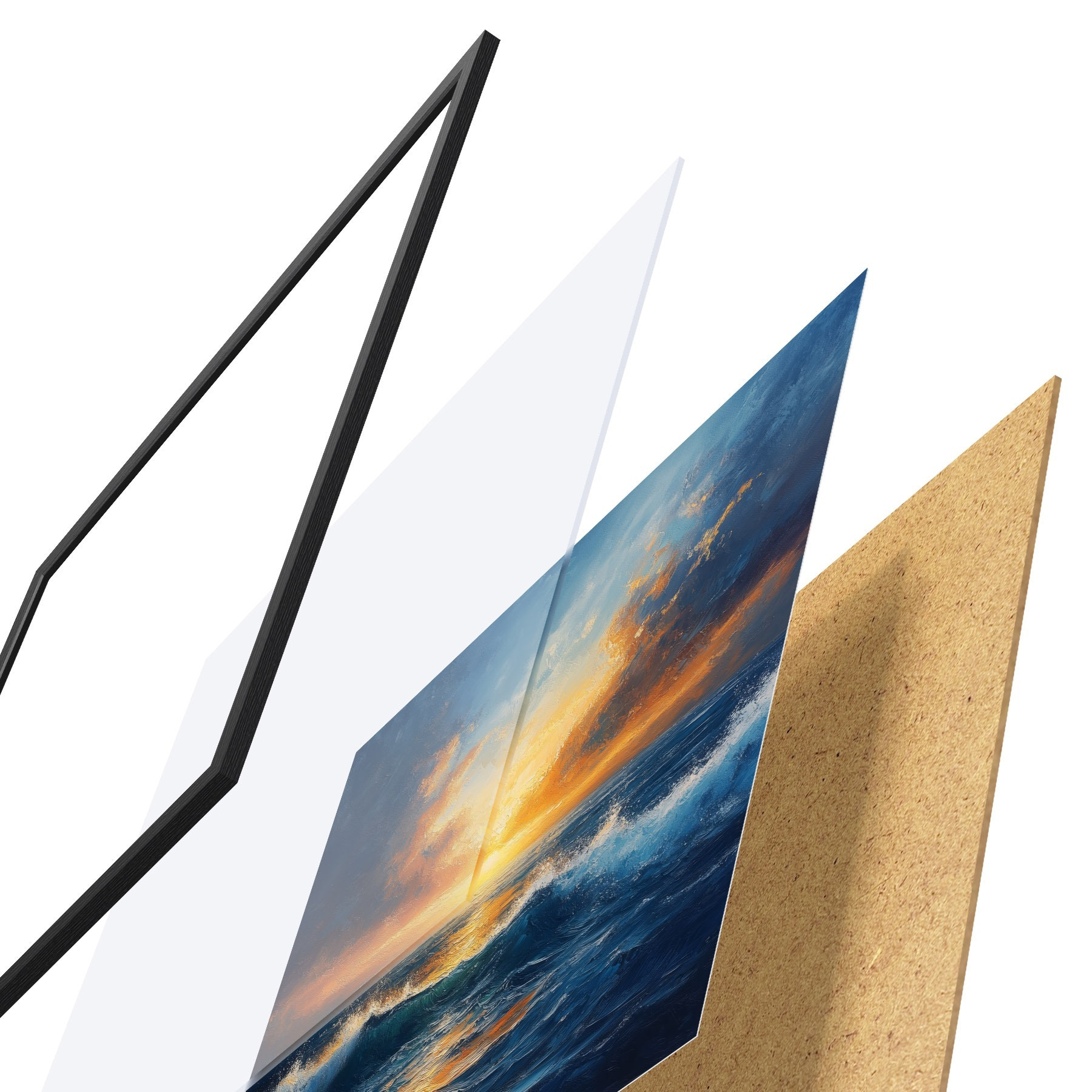 Plakatą sudaro rėmas, pleksiklas, atspausdintas vaizdas ir medžio drožlių plokštės pagrindas. Plakatą galima iš karto pakabinti ant sienos dėl kitoje pusėje esančių laikiklių.