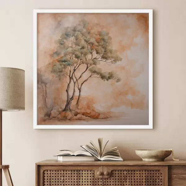 Plakatas Medis oranžinės ir baltos spalvos fone akvarelės tapybos stiliumi Ne f42514