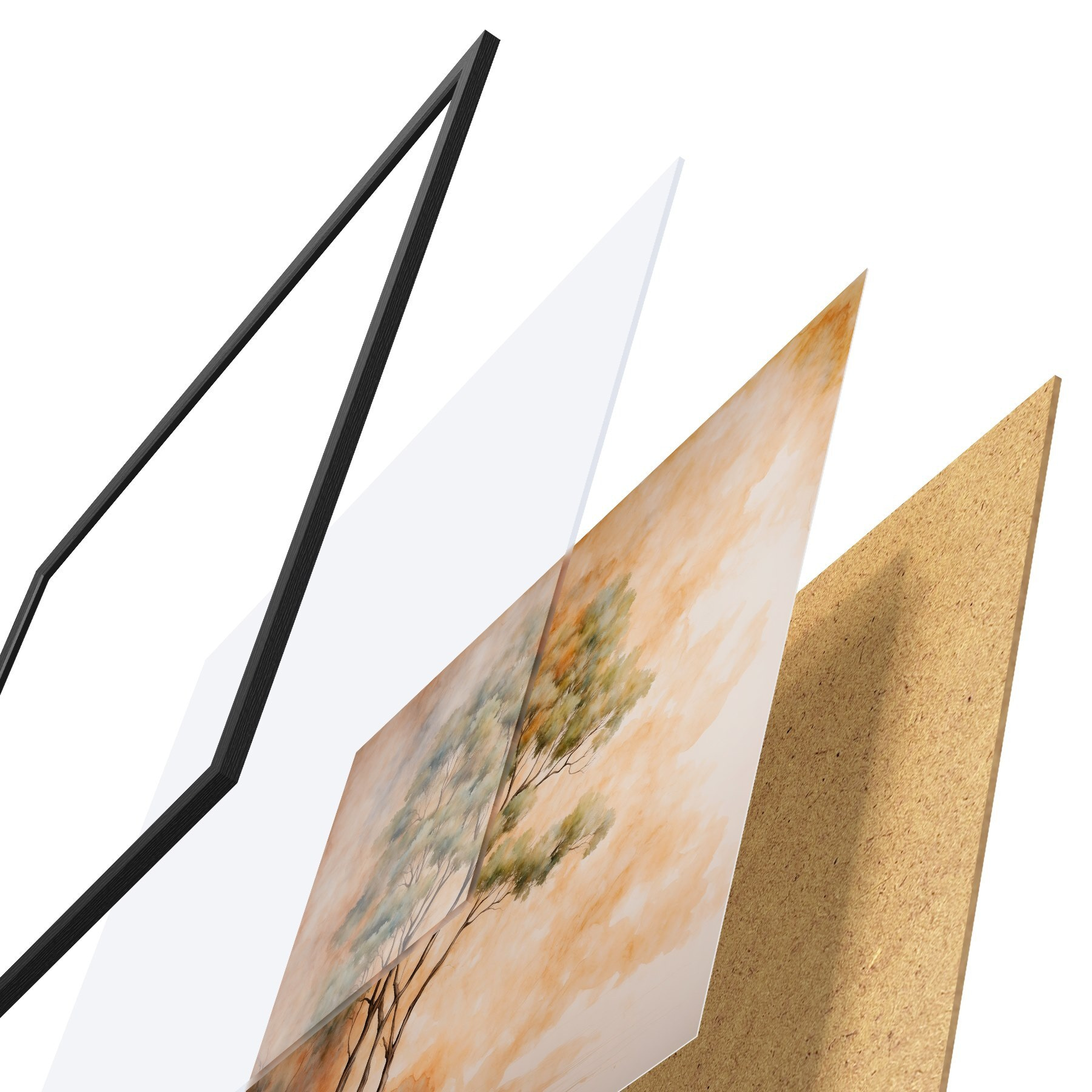 Plakatą sudaro rėmas, pleksiklas, atspausdintas vaizdas ir medžio drožlių plokštės pagrindas. Plakatą galima iš karto pakabinti ant sienos dėl kitoje pusėje esančių laikiklių.
