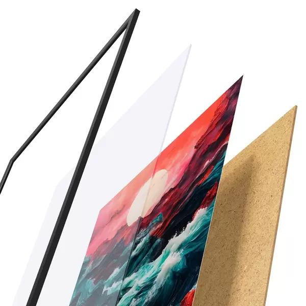 Plakatą sudaro rėmas, pleksiklas, atspausdintas vaizdas ir medžio drožlių plokštės pagrindas. Plakatą galima iš karto pakabinti ant sienos dėl kitoje pusėje esančių laikiklių.